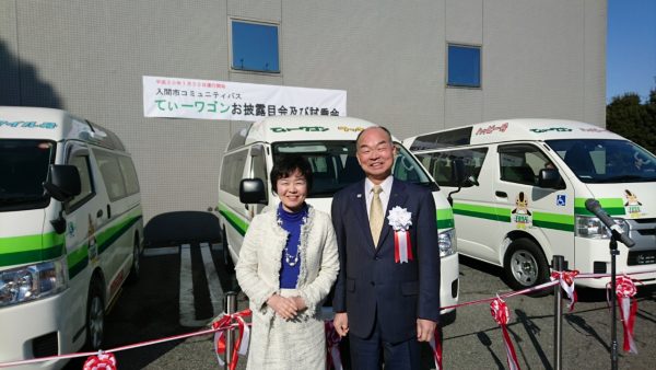 (お披露目会にて田中龍夫市長とご一緒に記念撮影。)