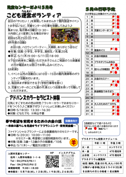 児童センター様についての問い合わせは直接、施設へお願い致します。