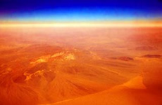 ネバダ上空の風景。地層と成層圏の青とのコントラスト。