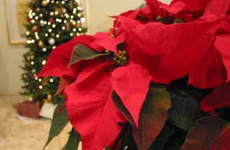 ポインセチアは、グリーンのツリーと合わせるとお互い引き立てあいます